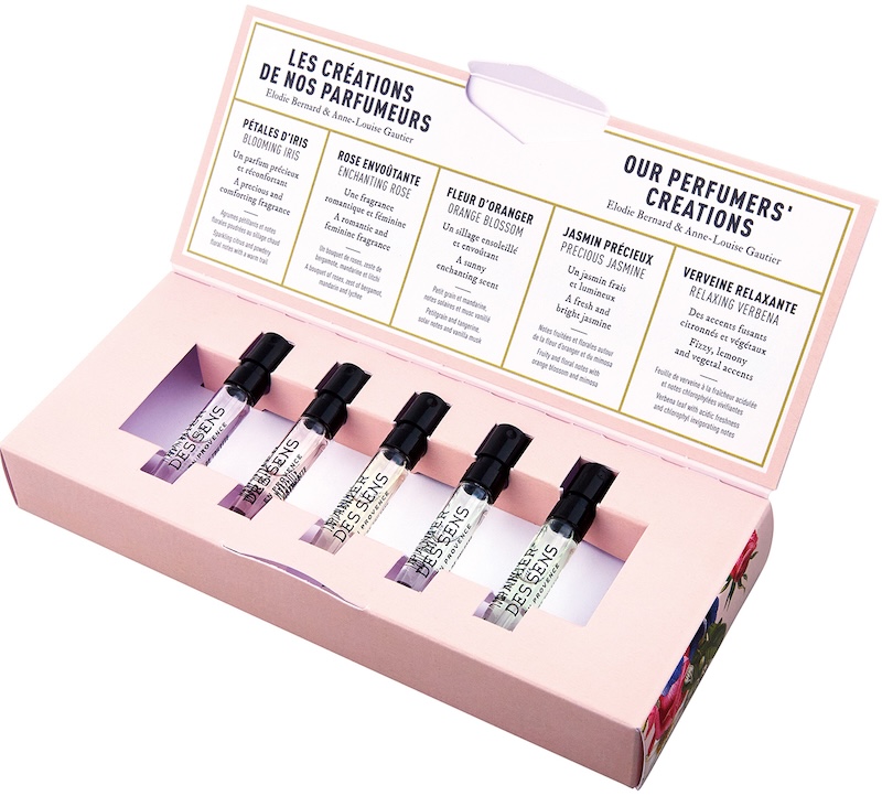 南仏プロバンスのアロマケアブランド、パニエデサンスの、「オードトワレ ディスカバリーセット」は、アイリス(セット限定)、ローズ、オレンジブロッサム、ジャスミン、バーベナの5つのフローラルノートを楽しむことができる。