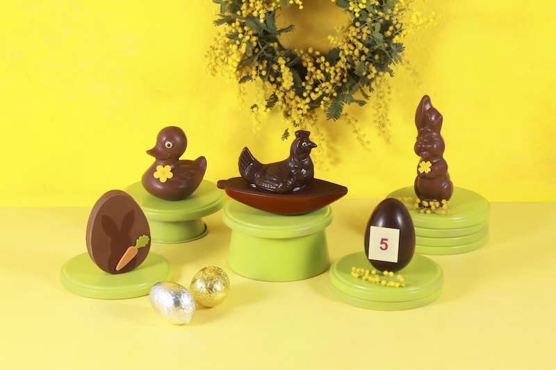 今年のイースターの“日付”(2026年のイースターは4月5日)を刻んだユーモラスな卵、「ウフ デュ ジュール」(本日の卵、の意)、カボス(カカオの実)から生まれためんどりをイメージした「プール カボセ」など、最高品質のカカオから着想を得た、遊び心あふれる詩的なピエスモンテ(チョコレート細工)が登場する。